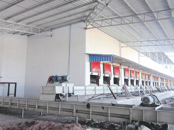 該機包括供熱系統、進料系統、清理系統、切碎機、輸送系統、烘干室、電氣控制系統等部分,烘干機主體由多個單體烘干室平面排列組合而成,每個單體烘干室相互獨立自成系統,既可以單室烘干,也可以與其他烘干室組合使用。